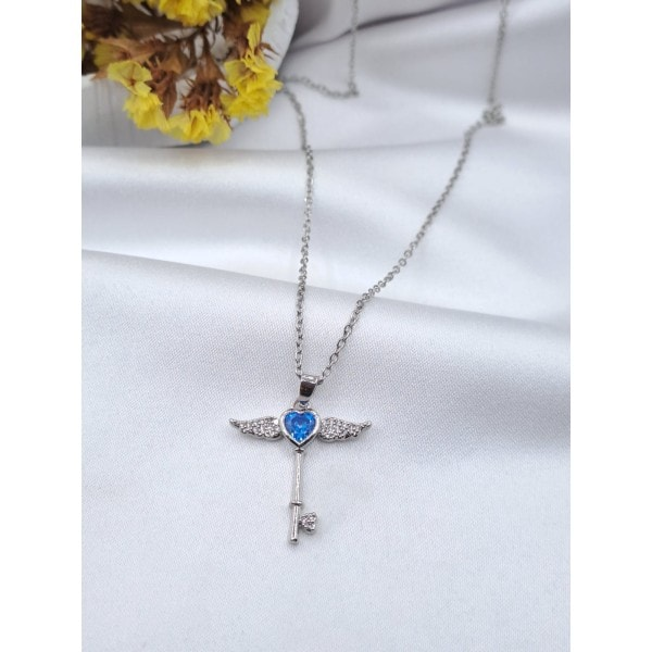 Çelik Kanatlı Anahtar Kolye Mavi (KLY-24-31010)